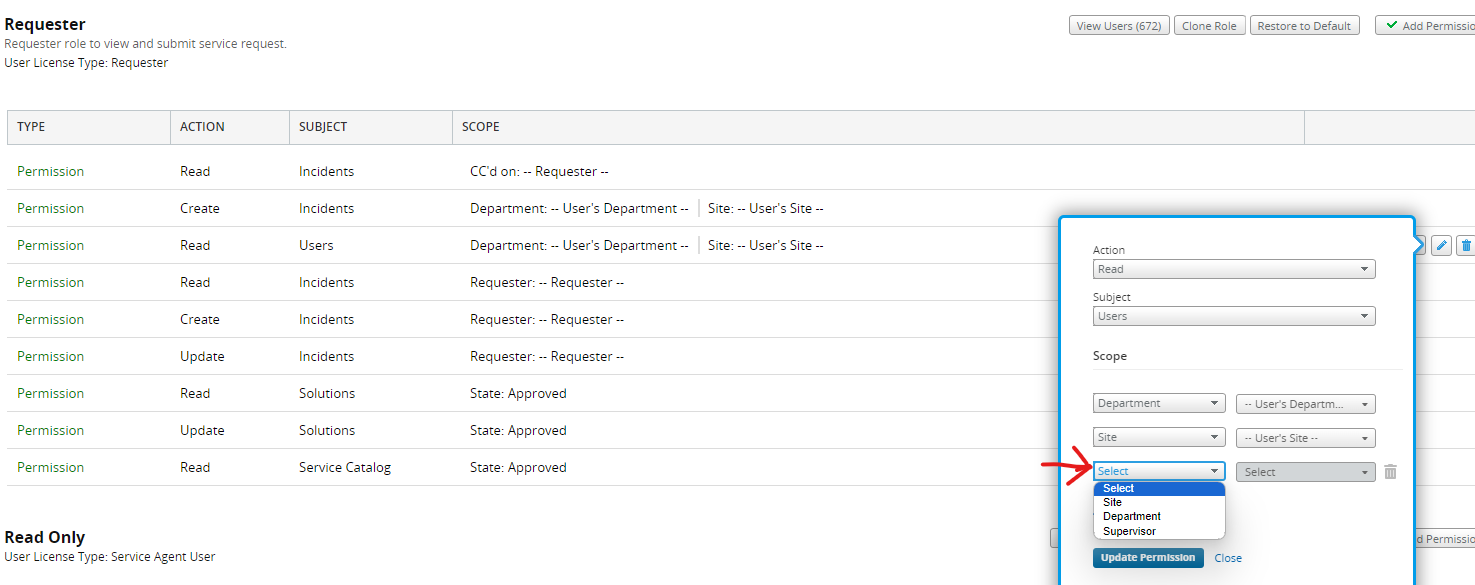 For example, I would like to have a supervisor who manages users in multiple departments be able to create an incident on behalf of a subordinate. With the current scope available, I can only view other users who report to the same supervisor (unless I am missing something).