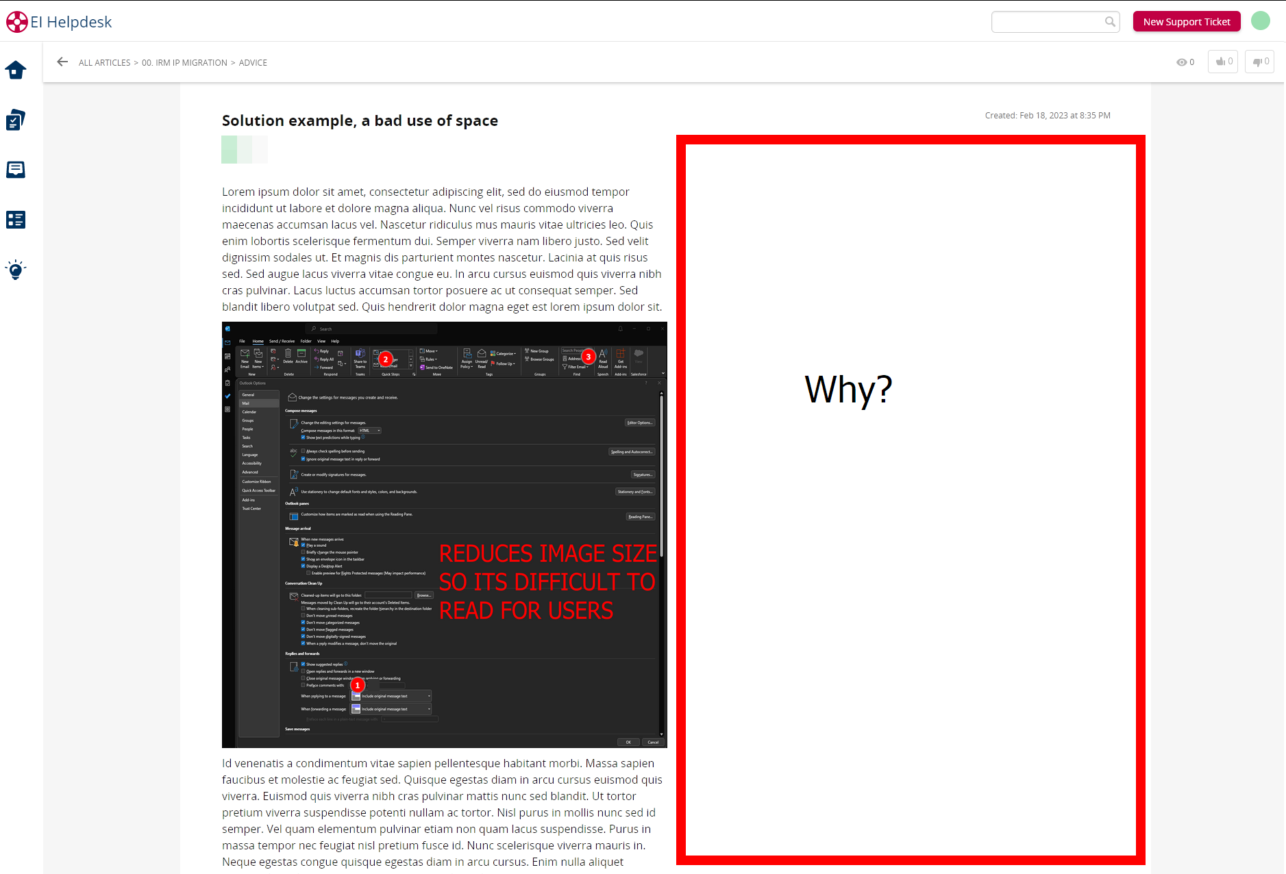 I'd love to move our IT Guides into the Service Desk Solutions area but there are still some issues that stop me from doing so, the most glaring of which is the choice to only use half of the page. Can we please fix the spacing so the full width of the page is used?
