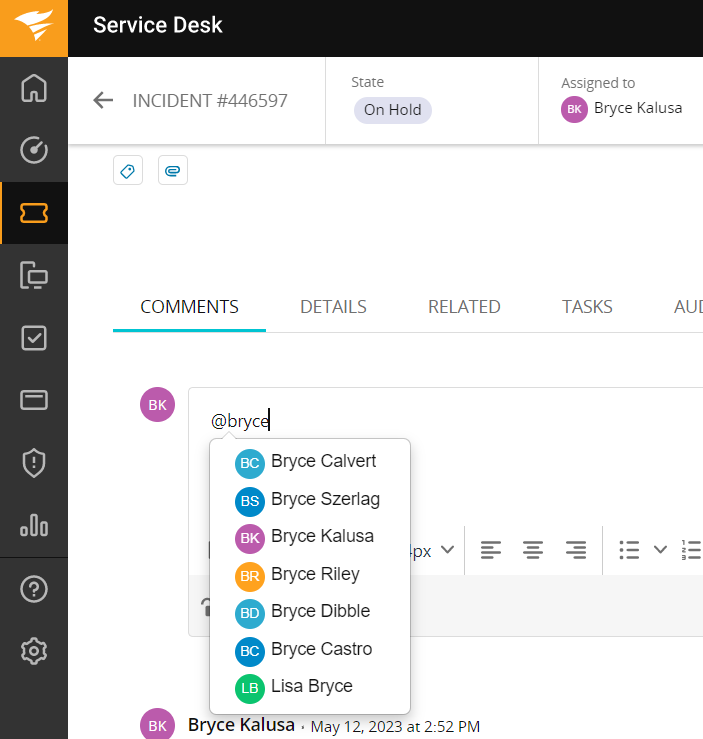 When an unlicensed user accesses Samanage, they are sent to a version of the site that is different from licensed. In this version of the site, they cannot @ other users like shown in screenshot 2. My suggestion is that all users are able to access this feature on both versions of the site.