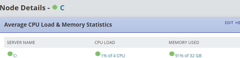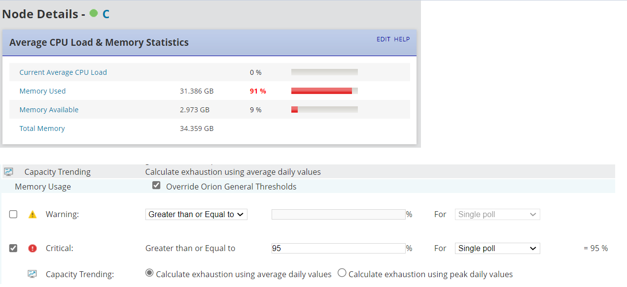 This example shows Memory at 91% which should be green based on the set thresholds.