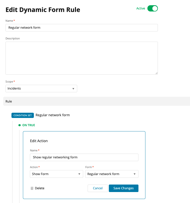 For example, you can display different forms for a network incident based on its priority (critical or non-critical), each showing different input fields: