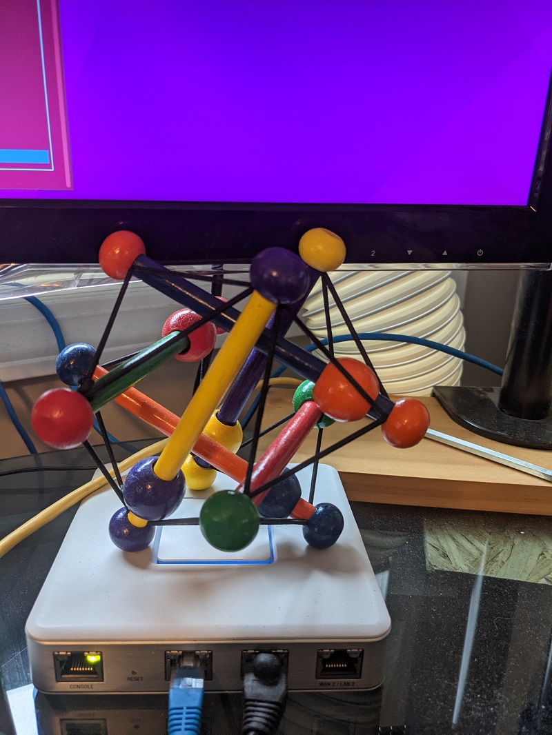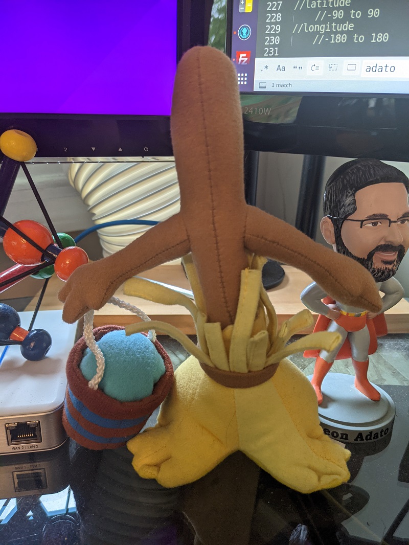 Maybe the weird squishy molecule thing? Nope, not that either. This was one of the first baby toys my wife and I ever bought. It kept my first child intrigued and occupied for hours. I have to admit it did the same for me, too. Ostensibly, it’s my daughter’s, but you can see who has it now.