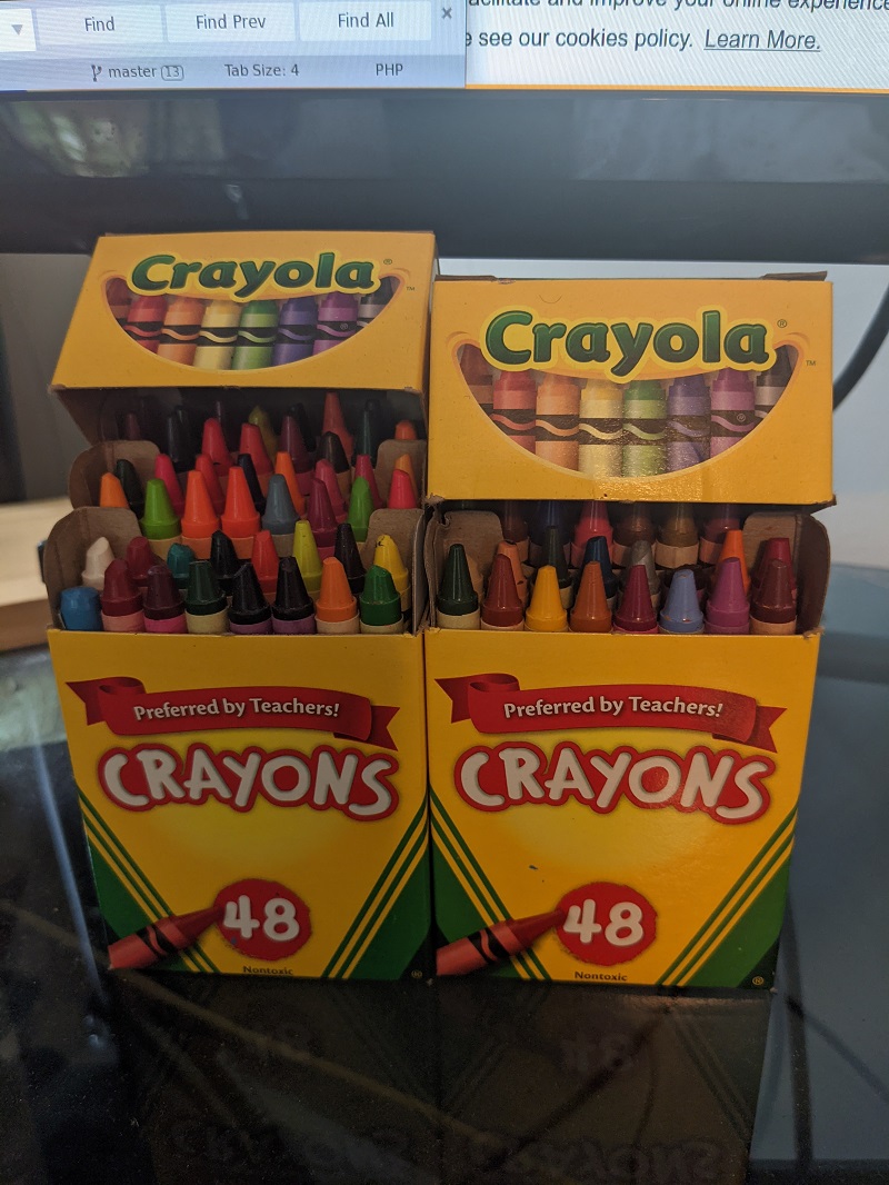 Is it the crayons? No, I got those after reading an essay by Robert Fulghum in “All I Really Need to Know I Learned in Kindergarten,” which said (in part), ”...every adult or child I give a new set of Crayola crayons to goes a little funny. [...] The adults always get the most wonderful kind of sheepish smile on their faces—a mixture of delight and nostalgia and silliness.” I read that and went right out and bought the biggest set I could find. Delight and nostalgia and silliness? That’s something I want on my desk, all the time.