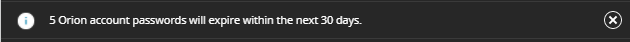 The notification alert will show Orion Platform admins how many accounts will expire.