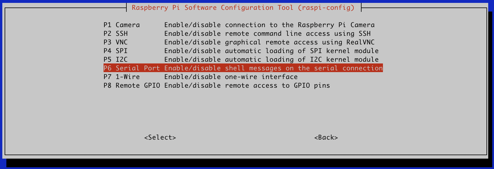 I changed the hostname (option S4) and time zone (L2), minimised the GPU memory (P2) and extended the file system (A1) as usual, but we need an additional step here: the Serial Port (option P6) needs to be changed, too, with a “no” followed by “yes,” to make sure the GPS hat gets exclusive access.