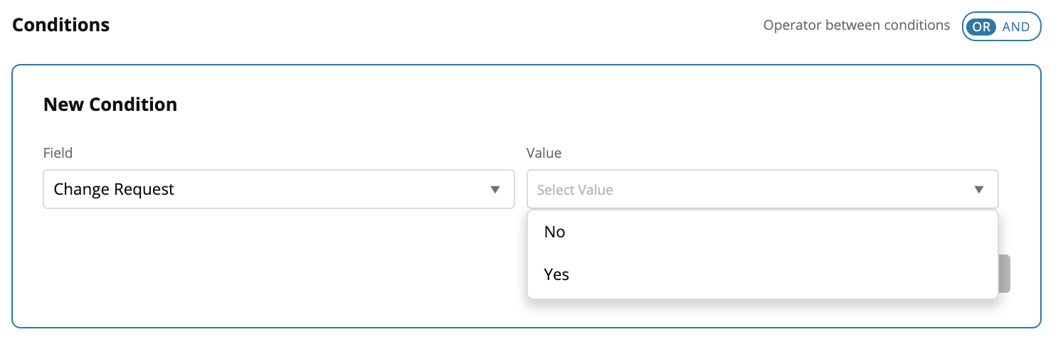 The second enhancement allows you to automatically notify stakeholders about any ad hoc change requests by adding a new drop-down menu for admins to specify whether a change request has been generated by the Change Catalog (Yes) or is an Ad Hoc Change (No).