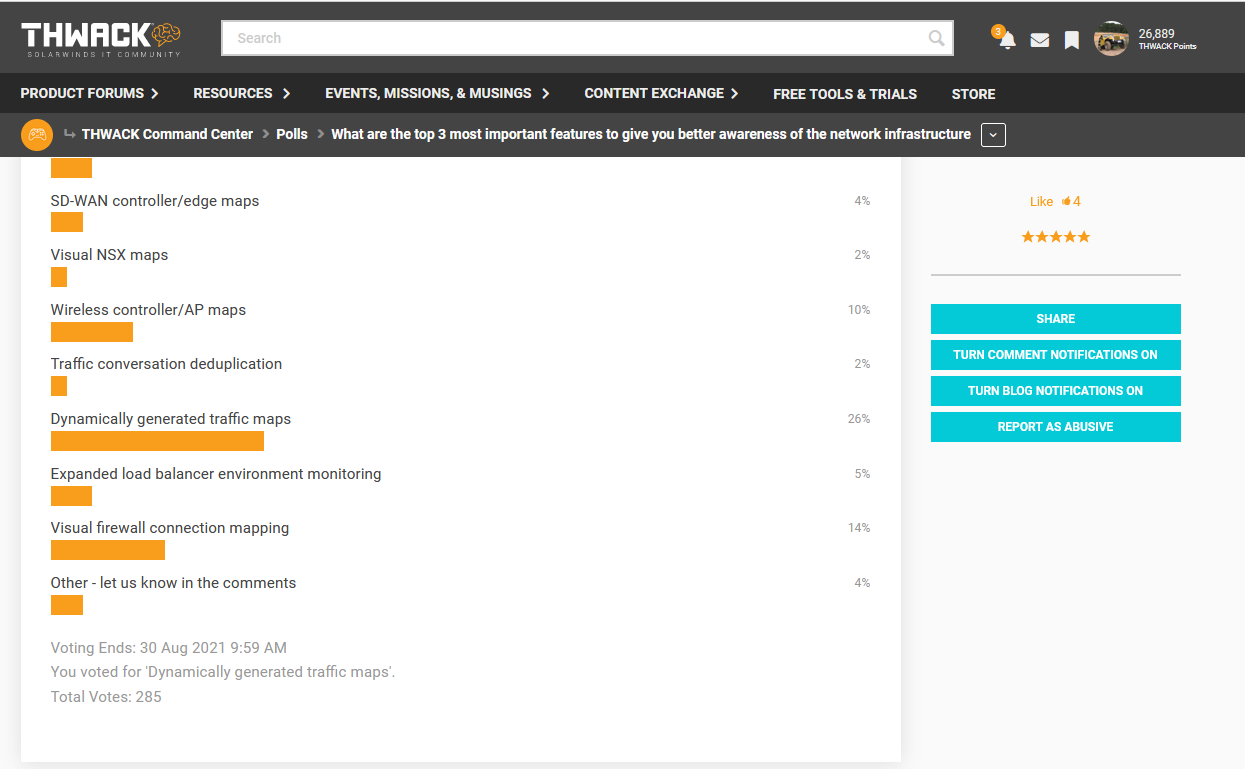 We tell you often, but we never get tired of repeating it. THWACK wouldn’t be what it is if it weren’t for each one of you. The input you give us and the work you put in to keep SolarWinds moving forward should be lauded often. Which is why, for the month of August, we implore you to give the product team some of your valuable opinions by answering a series of poll questions.