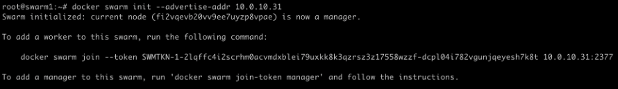 docker swarm init --advertise-addr 10.0.10.31