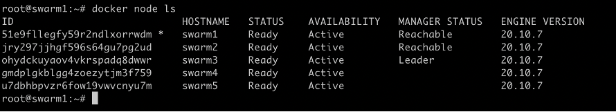On my manager node, swarm1, I run the following command: