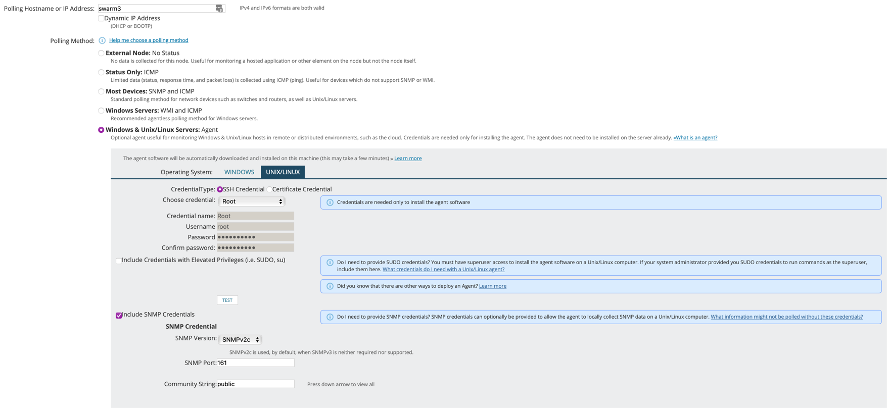 I’m adding all five nodes with both the agent and SNMP: