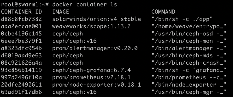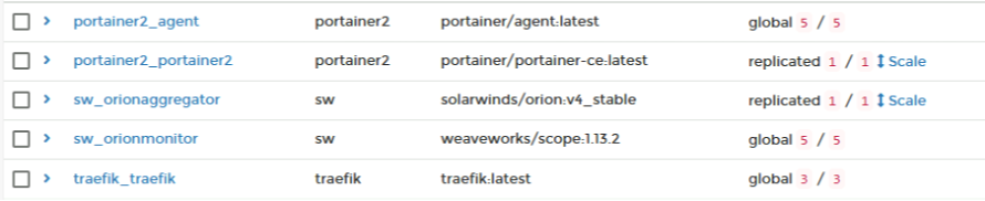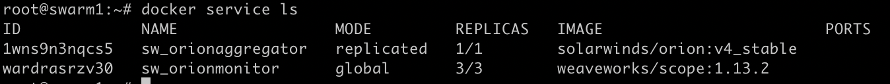 SolarWinds and Weaveworks are our new containers. But remember, we’re on Swarm mode with its services, so shoot this one: