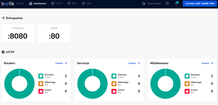 It takes a while to retrieve all information from its agents, so don’t rush jumping into the dashboard straight ahead. Maybe we check Traefik first: