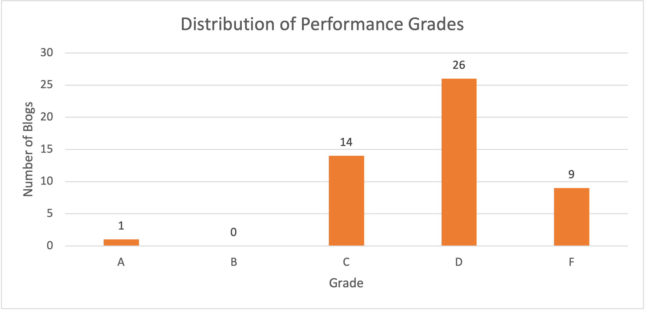 The scores follow the performance best practices of YSlow, and while there was an “A” grade awarded, the average grade was a “D.”