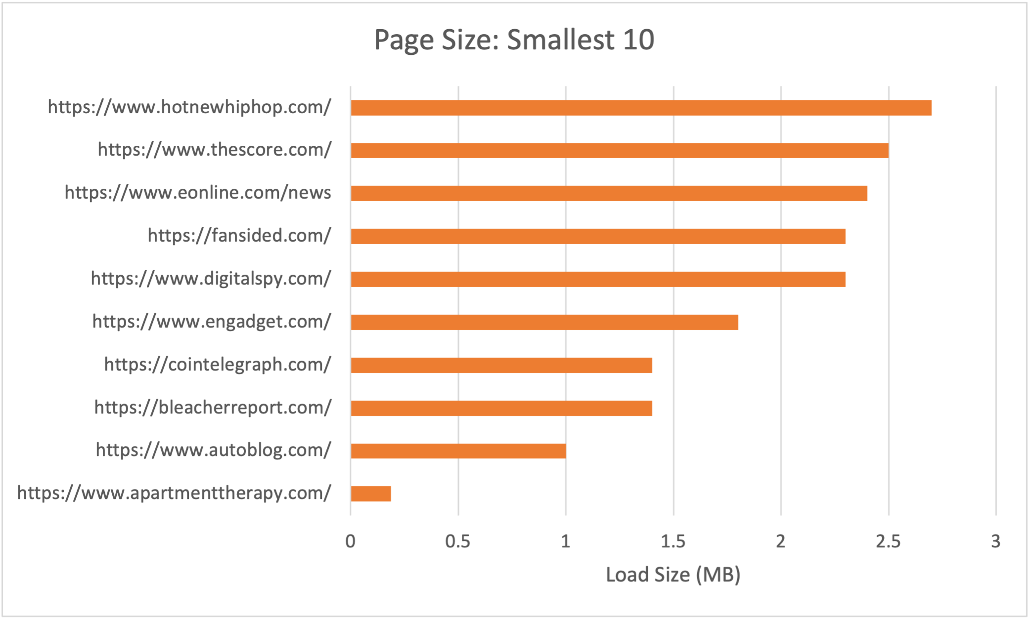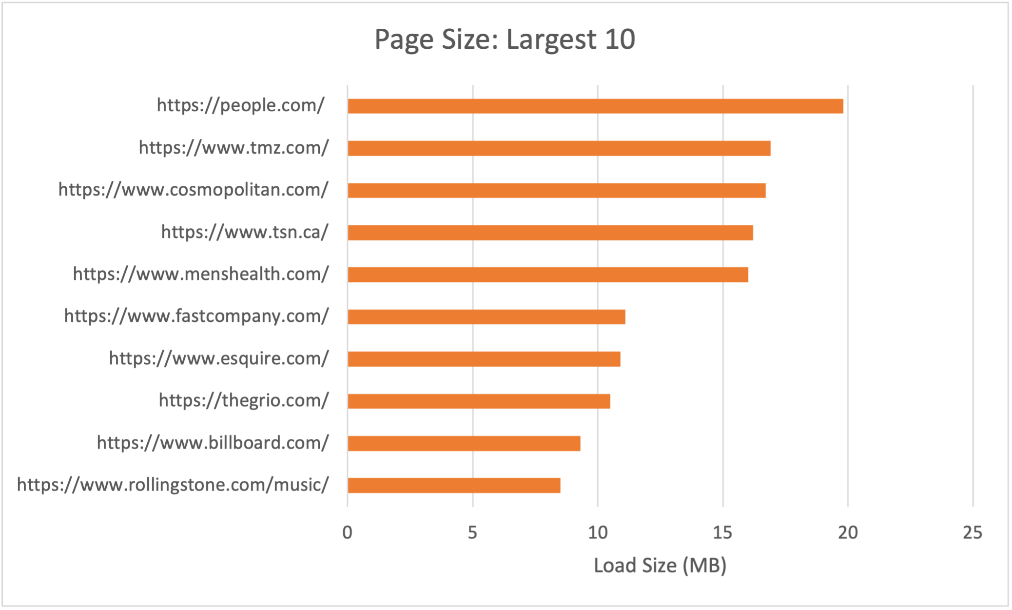 Here, it’s easy to see why the average is inflated to 5.9MB—these 10 sites were way over the average.