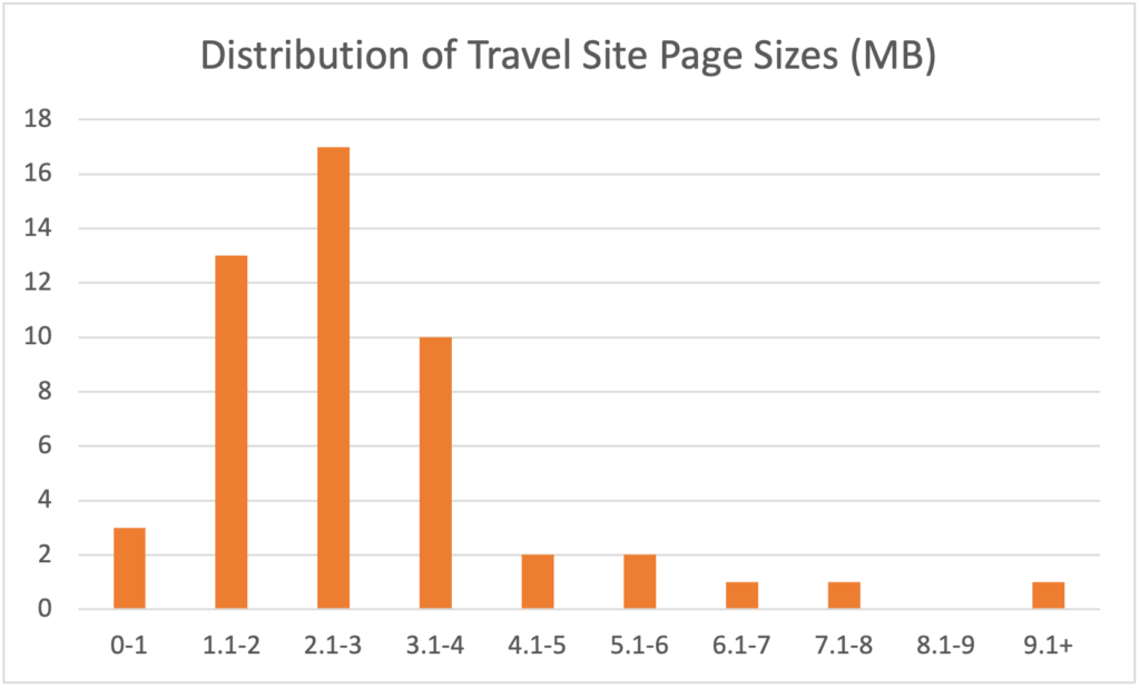 Despite low performance grades, the top 50 travel sites are optimized for load speed. This could be due to a low number of elements on the homepage (we’ll get into requests later) in addition to smart development to make sure the elements present (think beautiful destination photos and videos) load fast.