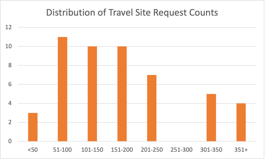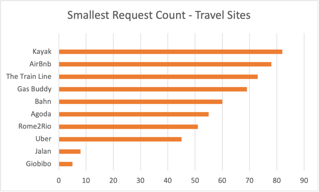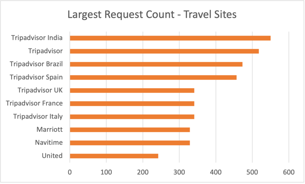 Each of the seven TripAdvisor sites that made it to our analysis contained the largest number of requests, but they still scored “Bs” and “Cs” for performance.