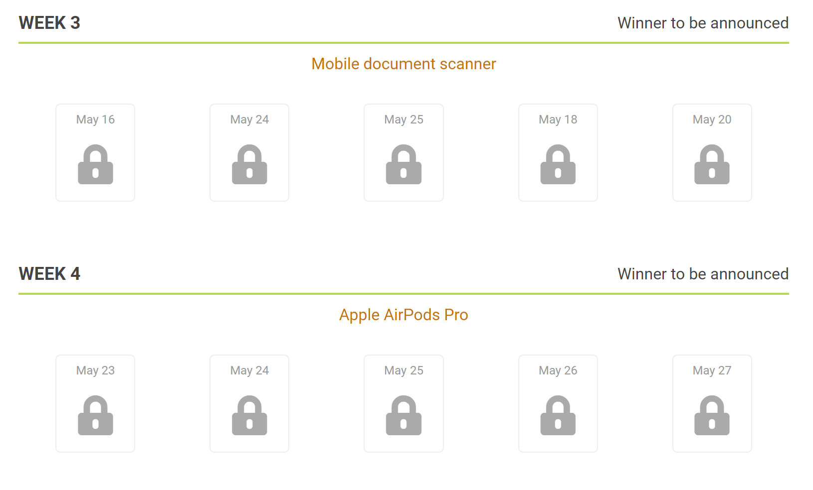Weekly Prizes & Drawing Dates: