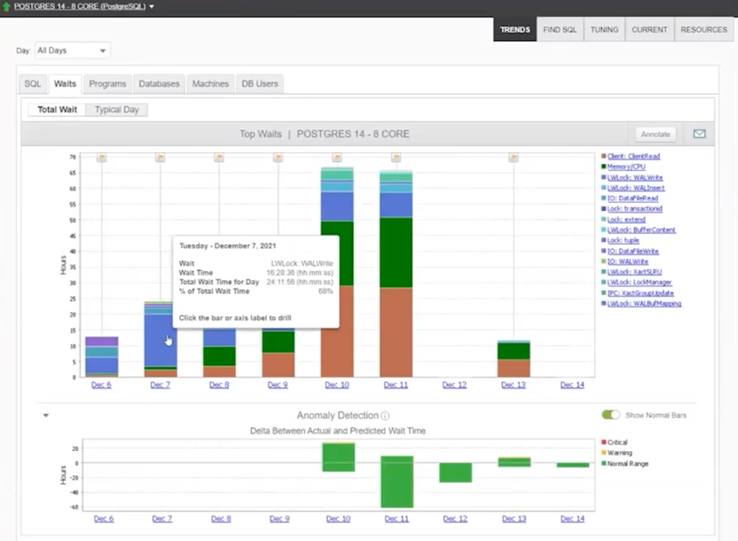 For me, the answer to the first question above, pinpointing where my workload runs better or worse on PostgreSQL, is Wait Time Analysis. It can help expedite functional and performance testing phases of a database migration. It has always been my go-to approach when trying to understand what’s working well or not so well.