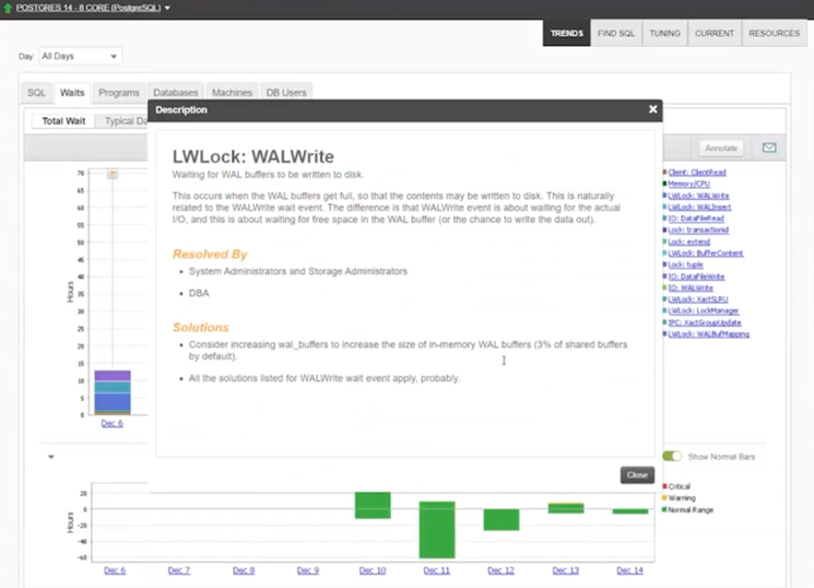 Suppose you know your database’s workload, understand Wait Time Analysis, and have the right tooling. In that case, you’ll be able to accelerate the tuning of your migrated database, even if you’re still learning PostgreSQL. Let’s walk through the Wait Analysis on a PostgreSQL database that has been migrated from Oracle.