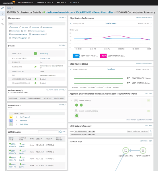 With SD-WAN support for Meraki, high availability monitoring with the status of primary, secondary, and peers is also possible. |  |