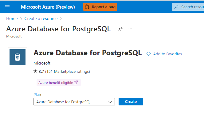 Let’s build a PostgreSQL Hyperscale server, connect to it, and load some sample data. To begin, I’ll navigate to the Azure portal and “Create a Resource.” From there, I will choose “Azure Database for PostgreSQL.”