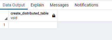I want this table to be distributed among worker nodes. To do this, I’ll need to call the function create_distributed_table and provide the table name and the name of the distribution column.