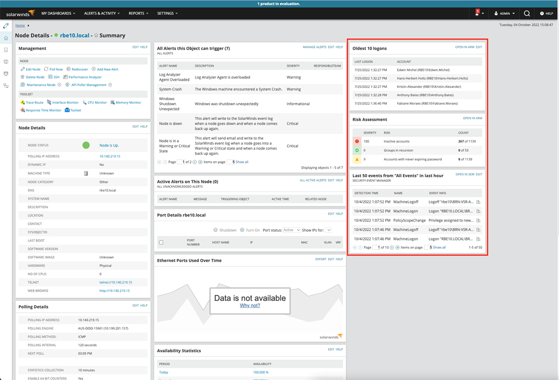 We’re excited to announce the integration of our security products, Security Event Manager (SEM) and Access Rights Manager (ARM), with our SolarWinds® Hybrid Cloud Observability solution. This will allow IT admins to view important security dashboards from SEM and ARM within Hybrid Cloud Observability. IT admins will also be able to see correlated node-based events and issues dashboards from SEM/ARM in the appropriate node details pages.