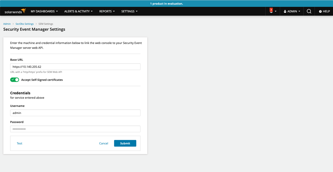 Once clicked, SEM or ARM details can be entered there for integration.