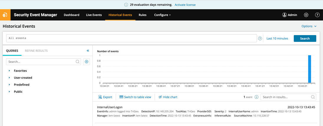 In SEM, under the tab “Historical Events,” there’s an option to view or add saved queries for filtering the events.