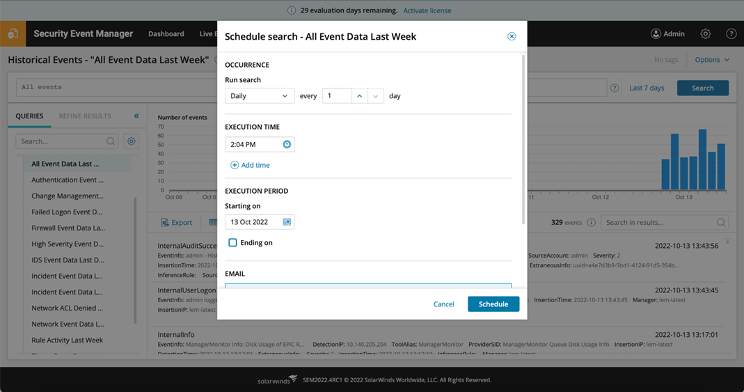 The picture below shows an example of a predefined saved query in SEM that can be scheduled or edited.