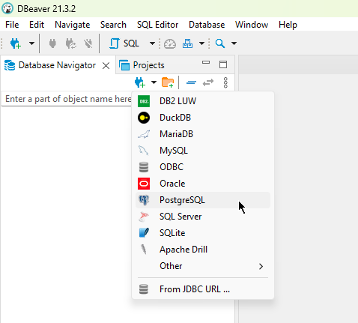 Let’s open DBeaver and add a new connection to PostgreSQL.