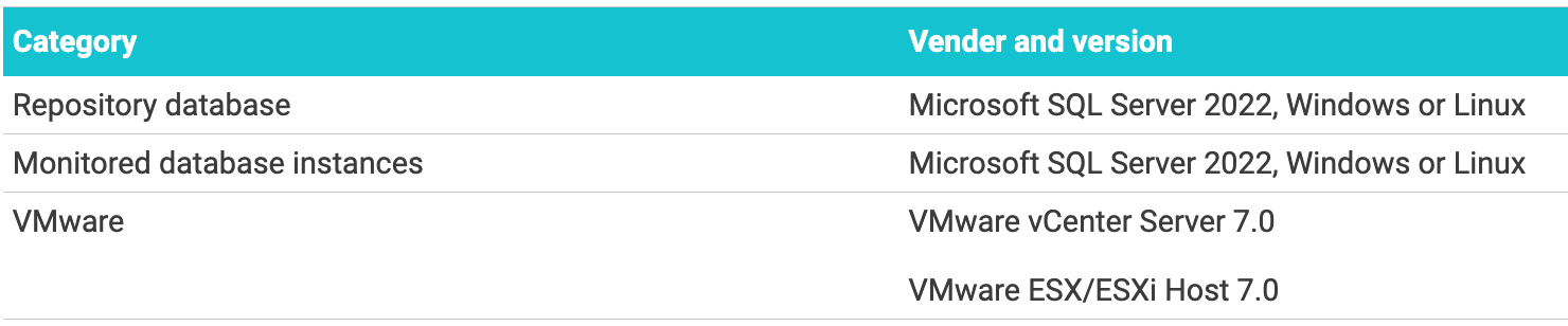 Added support for new SQL Server and VMWare versions