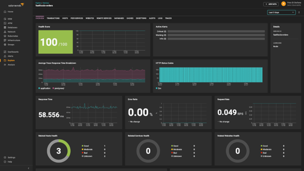 SolarWinds Observability gives you a 360-degree view into these aspects of your system through a single pane of glass. It comes with advanced tools and uses visual dashboards to help you set baselines and monitor your system's state pre and post-migration.