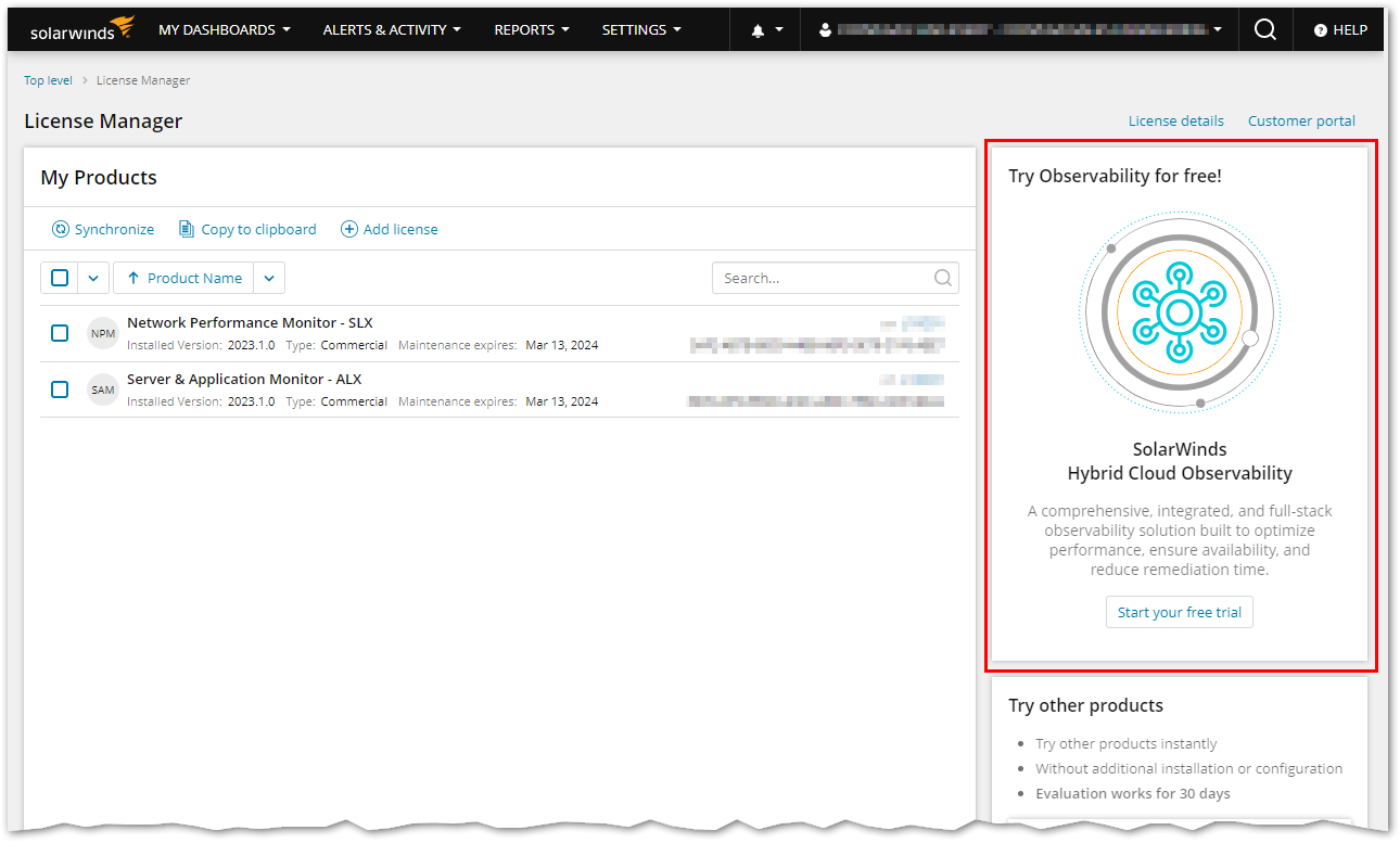 This is a big deal since running an evaluation in the past meant having downtime to install the new module. Now, navigate to the License Manager page on your SolarWinds deployment.