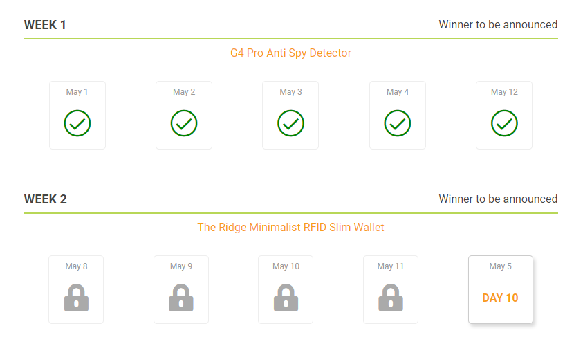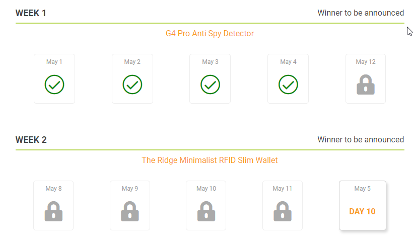 Answer all 20 questions correctly over the course of the month and you'll be entered for a chance to win the grand prize.