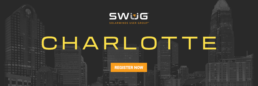 At the Charlotte SWUG, we'll have sessions on topics like getting the most from your network performance monitoring, how to deal with the growing snaggle that is cloud management, ways to improve your security operations, and more. You'll also get a chance to provide feedback to SolarWinds and influence the product roadmap.