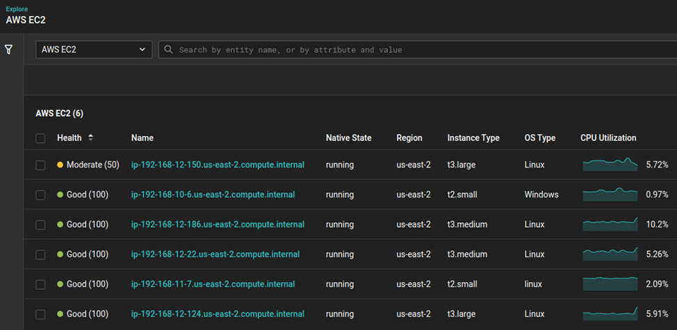 SolarWinds Observability provides details about instance types and sizes. These details can help organizations to define the optimal instance counts and sizes.