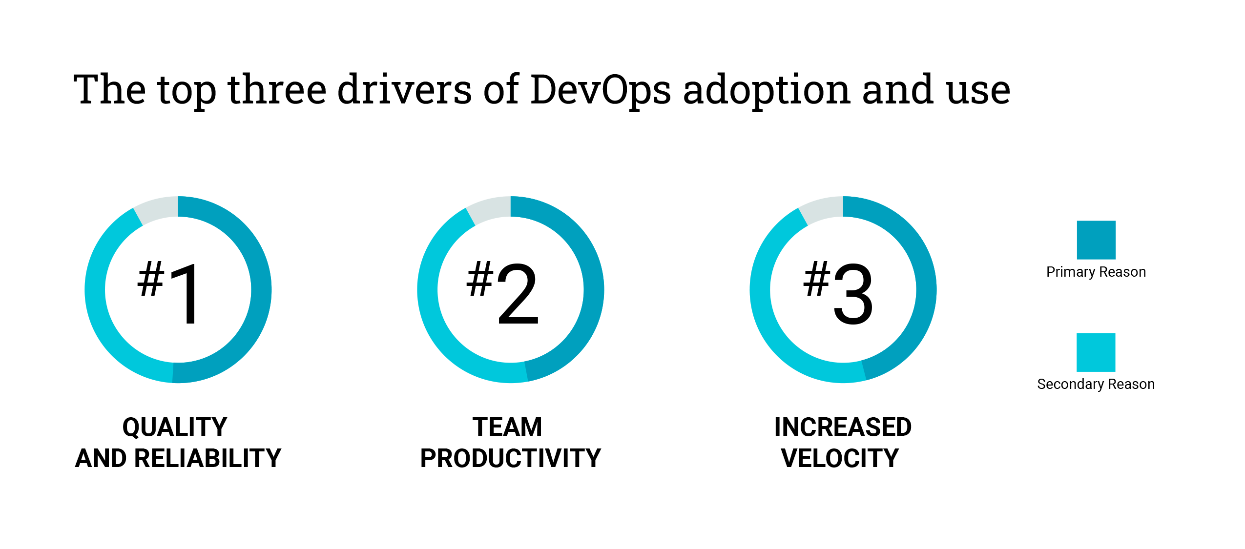 While there may be many reasons that prompt varied organizations in different industries to deepen their DevOps practices, GigaOm found the top three drivers were improving the quality and reliability of each release, increasing team productivity, and faster release velocity. These fundamental principles of increasing quality, efficiency, and speed are attractive and have broad appeal across industries, geographies, and functional areas.