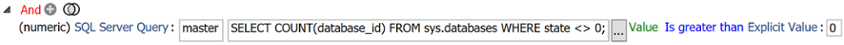 The condition query will look like this - a numeric SQL Server against master