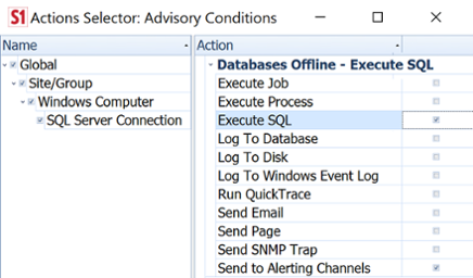 With this condition enabled, SQL Sentry will be collecting data on the state of the databases you are monitoring. When you save the condition, you will be asked to add actions (you can always do this later, by right-clicking the condition in the list, and choosing Add Actions