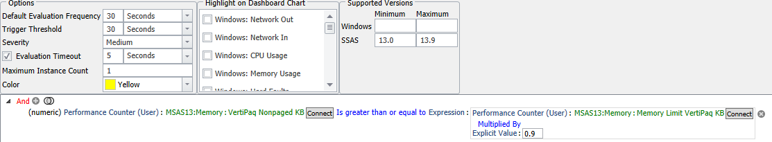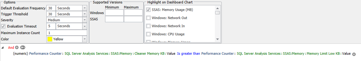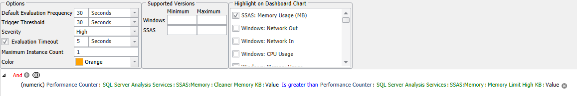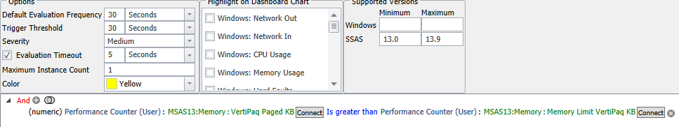 In this post, I’ll walk through these conditions, provide links so you can download and import them, as well as introduce a couple more specific to Tabular mode. I don’t want to play spoiler, but these will give you a taste of some enhancements to our SSAS performance monitoring that will be coming soon that are specific to Tabular mode, the xVelocity (often referred to as VertiPaq) storage engine, and DAX analysis.