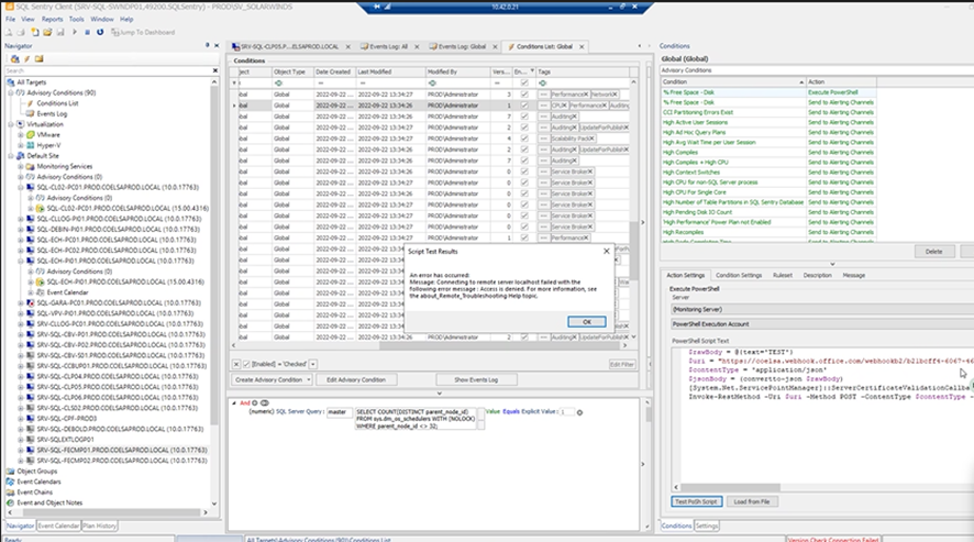 As I explained previously about new features in version 11.2 of SentryOne, we have introduced a new Condition Action that can execute PowerShell. I will now demonstrate a potential use-case for getting the most of this Action in order to integrate SentryOne with Slack and Teams.