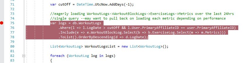 Today, however, I am looking for a very specific query. Due to the nature of Entity Framework queries, it is difficult to match the T-SQL from DB Sentry with LINQ queries in C#. In order to do this, I'm going to need to use some nice features of Visual Studio 2017, and Plan Explorer.