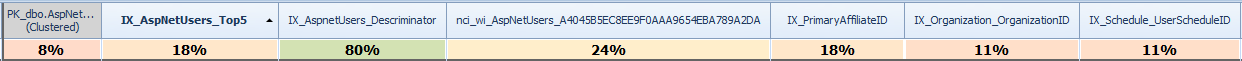 One thing I know (because I know the application, and the code, very well) is that this query runs all the time, on every page, and in just about every function. If one thing has to run blazingly fast, it's this query. With that in mind, when I go to my Index Analysis tab in PE, the first thing I see is a bit upsetting: