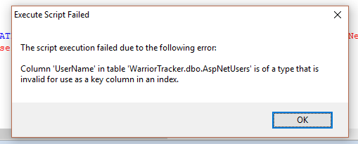 I am filtering on both Username, and Id for the user table. I think something using those 2 columns could help me out. However, as I begin to formulate a plan, I am stopped by what I am going to call poor database design. I don't mind saying that, because the truth is, I am the one that did it. Early on, it was assumed we would always be searching for users by their Id, and the Username column was created using nvarchar(max). It was decided that the application would control the length of the Username, and it does, but this is an example of how we should be thinking about database performance at every stage of a project, no matter how big or small. You see, I can't use this column in an index key, because of the data type, and to change the data type now is going to introduce a lot of risk. I still have options, but the easiest is all but closed to me, with noone to blame but myself.