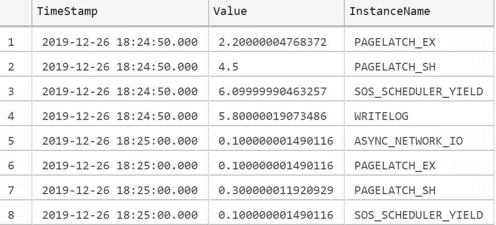 EXEC dbo.GetCounterSQLResourceWaitsDataRangeByTimestamp @DeviceID = 1