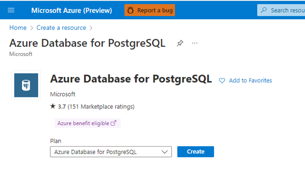 Let’s build a PostgreSQL Hyperscale server, connect to it, and load some sample data. To begin, I’ll navigate to the Azure portal and “Create a Resource.” From there, I will choose “Azure Database for PostgreSQL.”
