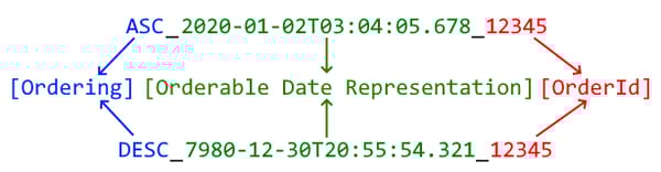 - The second part for ASC rows will be the plain order date, and for DESC rows will be a DateTime value calculated by subtracting the order date from DateTime.MaxValue.