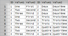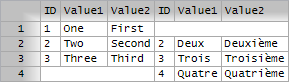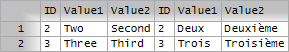 VALUES (2, 'Deux', 'Deuxième'), (3, 'Trois', 'Troisième'), (4, 'Quatre', 'Quatrième')