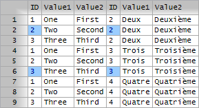 If we consider the ON clause, and highlight the ID values that match in our CROSS JOIN result set, we can see two rows fit the bill: